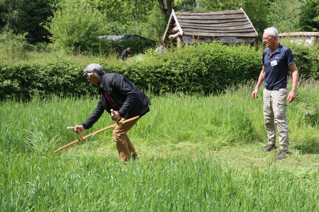 Oefenen met de zeis met parkbeheersteam Nooterhof